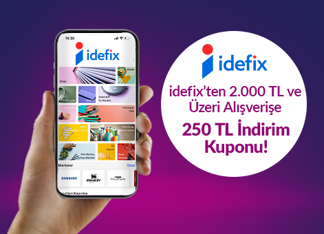 • Kampanya fırsat kodları İdefix'te yapılacak 2.000 TL ve üzeri alışverişte 250 TL indirim sağlar.
